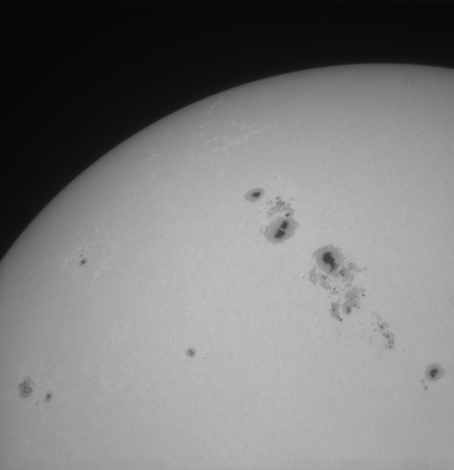30.09.25 09:58 UTC 20cm Meade LX200, Mylar ND3.8 photographic filter, Baader solar continuum filter, IR/UV cut filter, Flea 3 CCD.