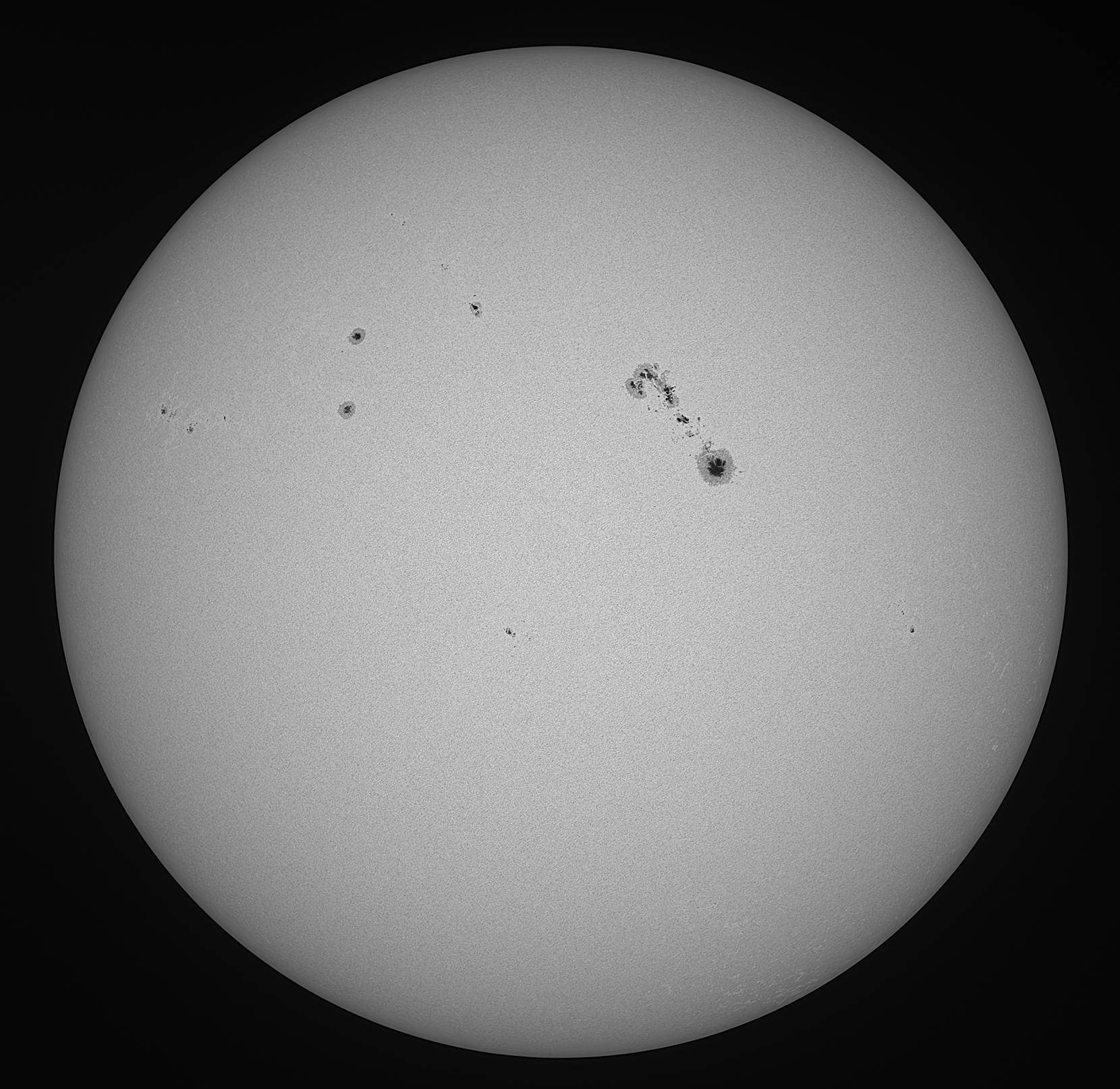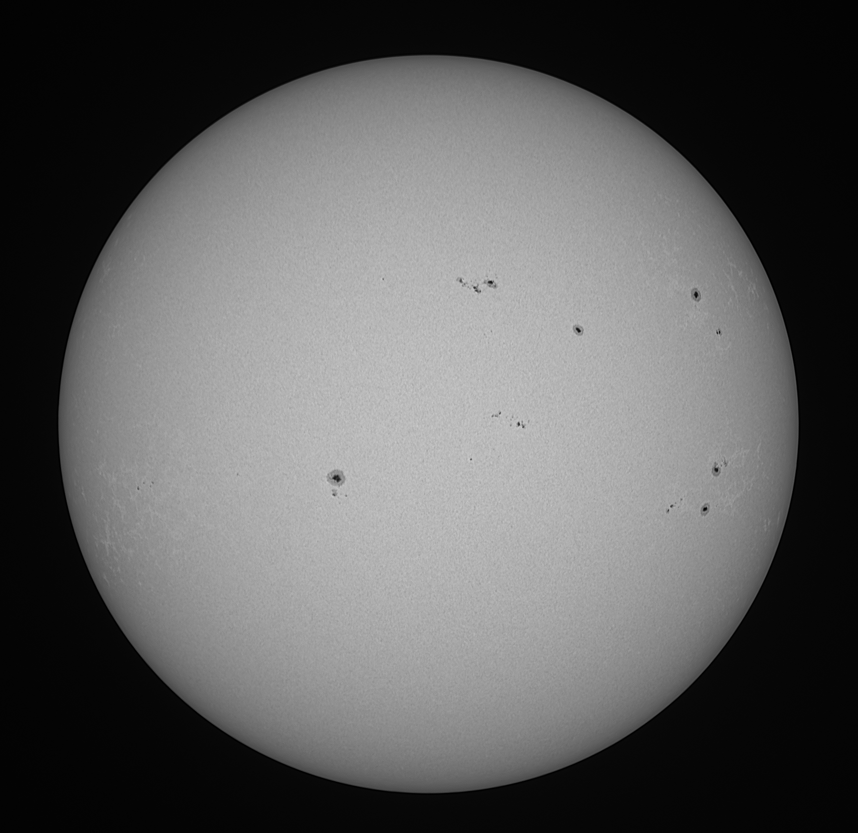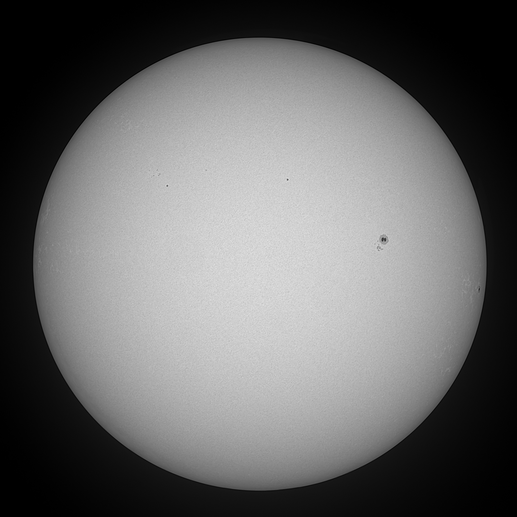 05.03.26 11:16 UTC, white light filter, 80mm ED refractor, f=600mm, Baader solar continuum filter, IR/UV cut filter, Saturn-M SQR camera