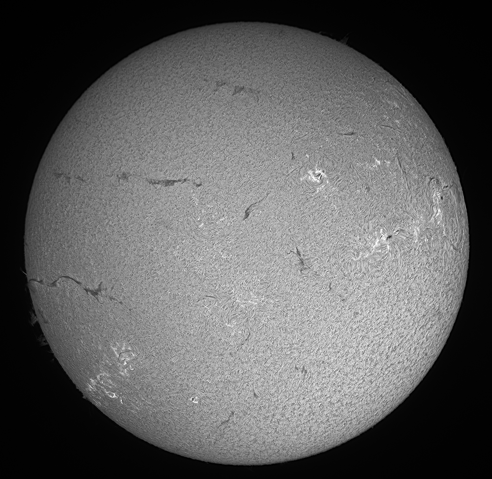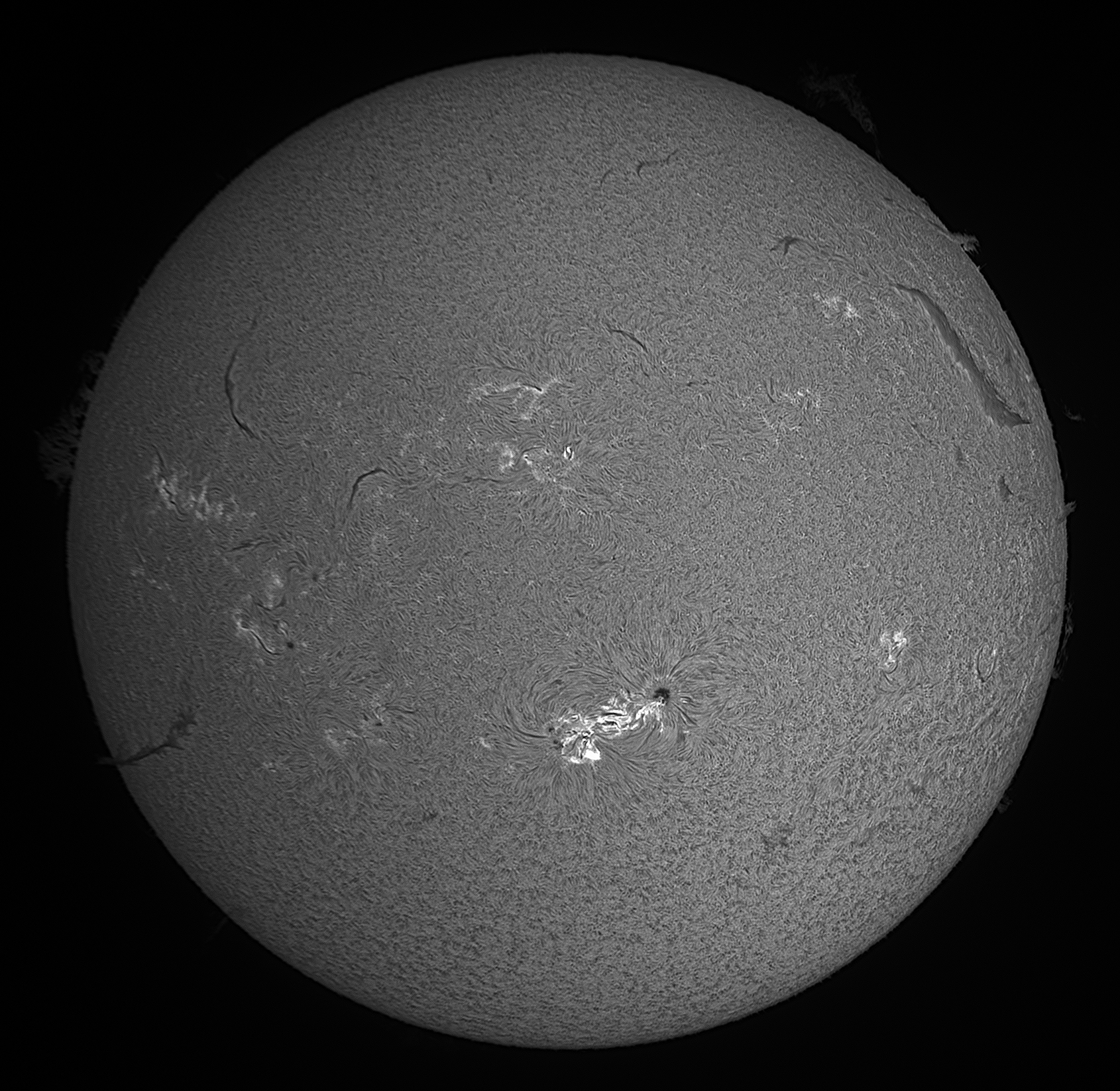 30.09.25 10:27 - 10:37 UTC, Coronado SM40 double-stacked filters, f=600mm, IR/UV cut filter, Flea 3 CCD.