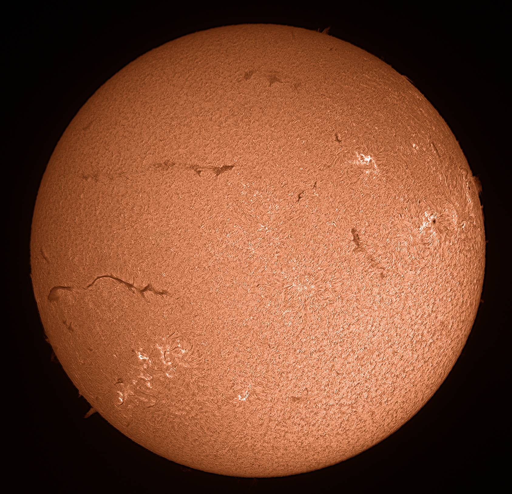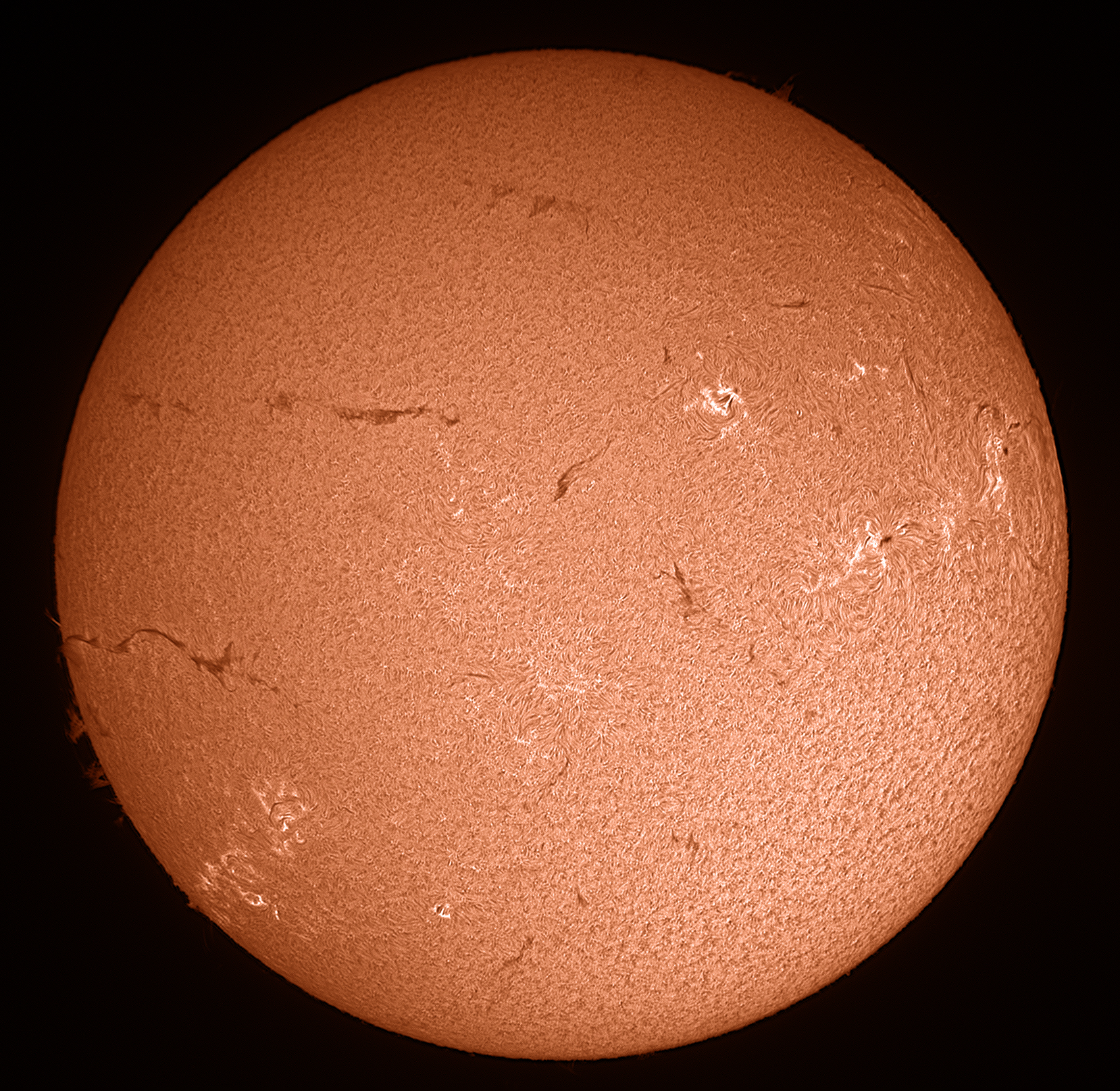 25.11.25 10:09 UTC, Coronado SM40 double-stacked filters, f=600mm, IR/UV cut filter, Saturn-M SQR camera.