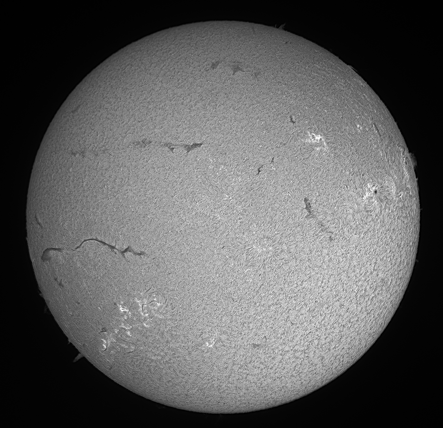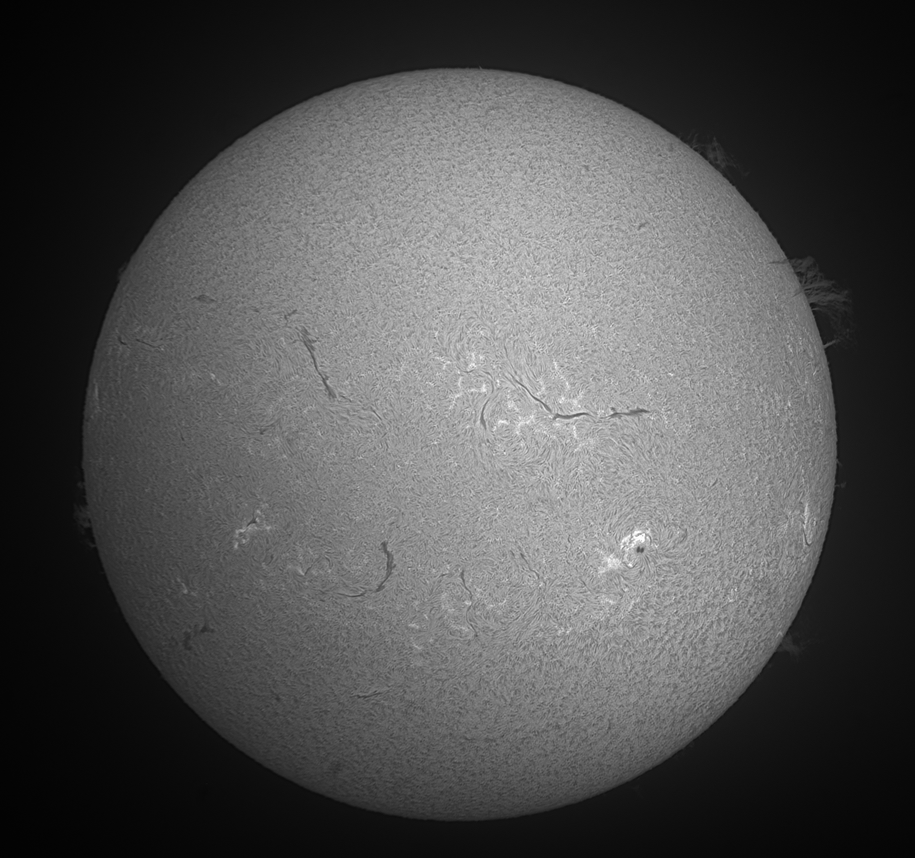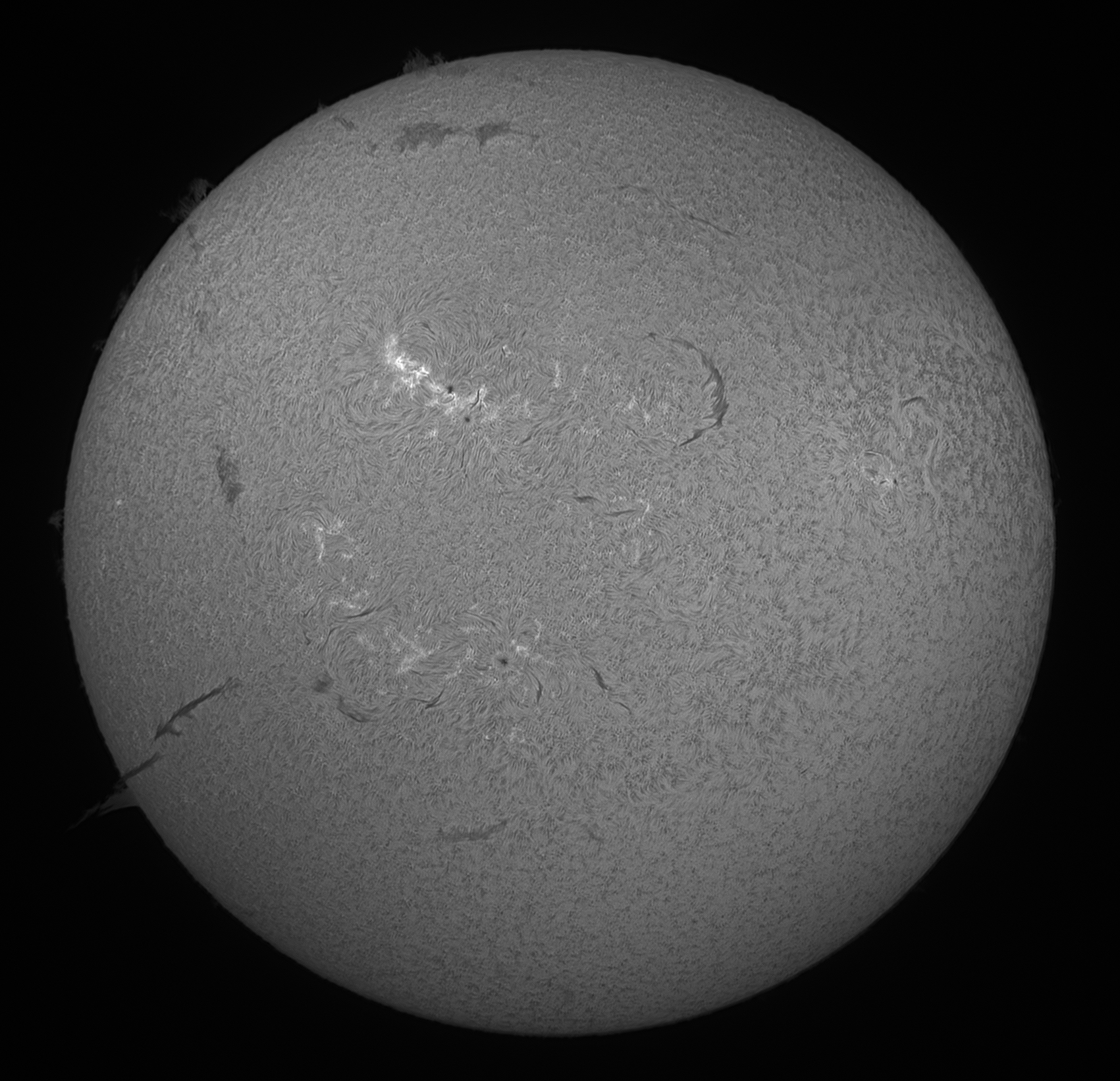 30.09.25 10:27 - 10:37 UTC, Coronado SM40 double-stacked filters, f=600mm, IR/UV cut filter, Flea 3 CCD.