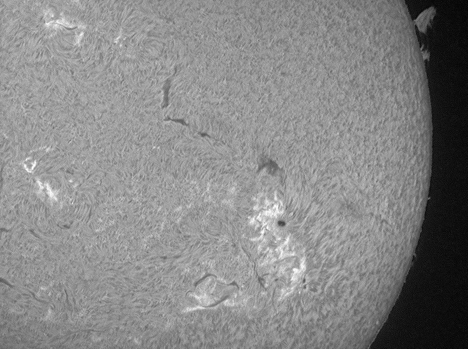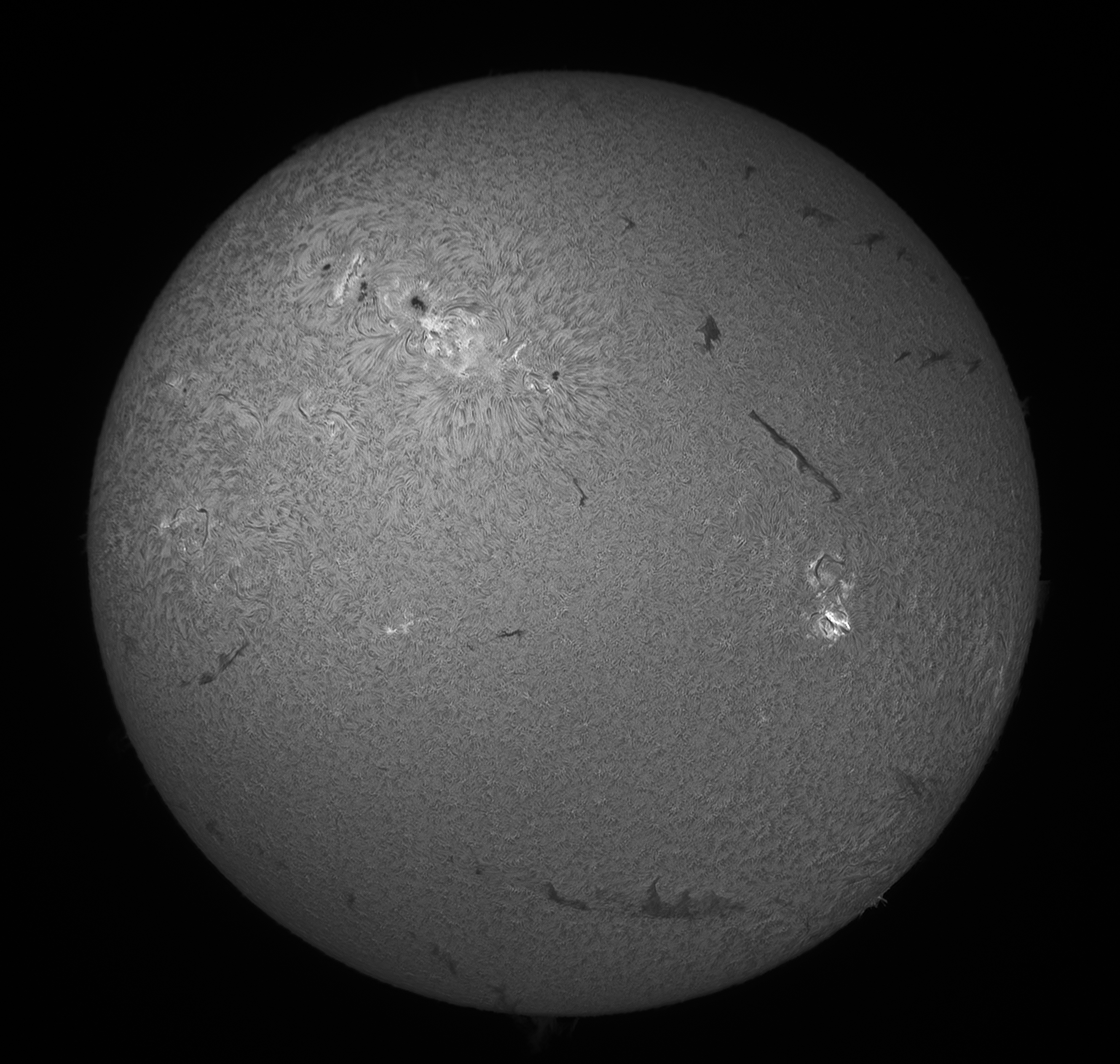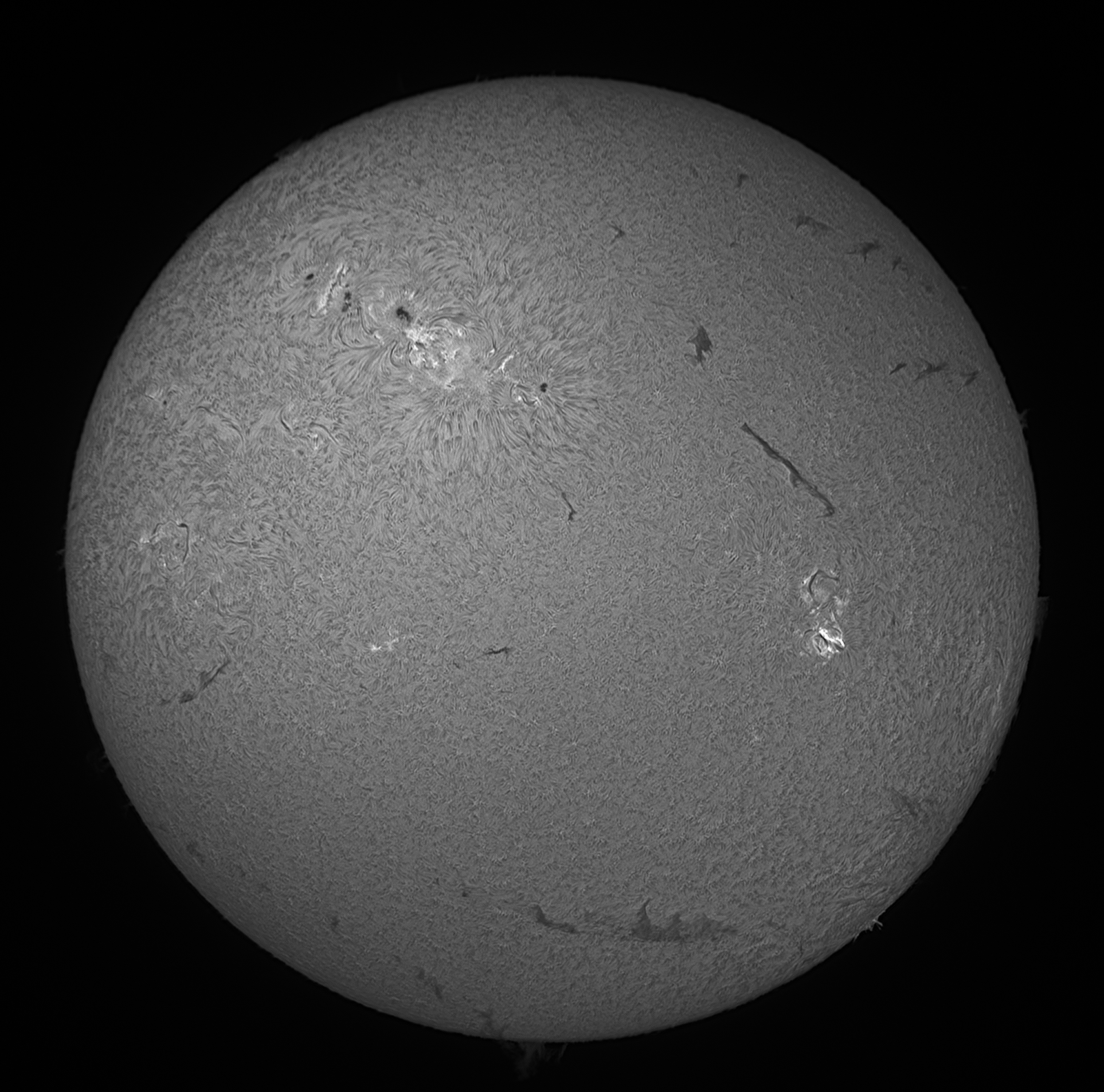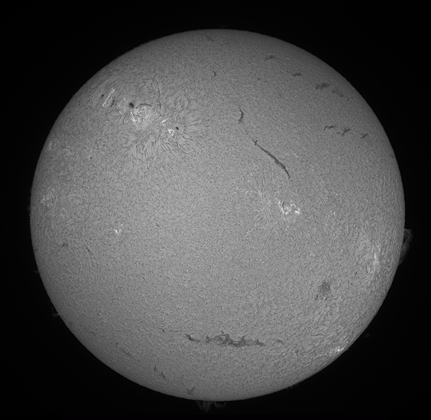 30.09.25 10:27 - 10:37 UTC, Coronado SM40 double-stacked filters, f=600mm, IR/UV cut filter, Flea 3 CCD.