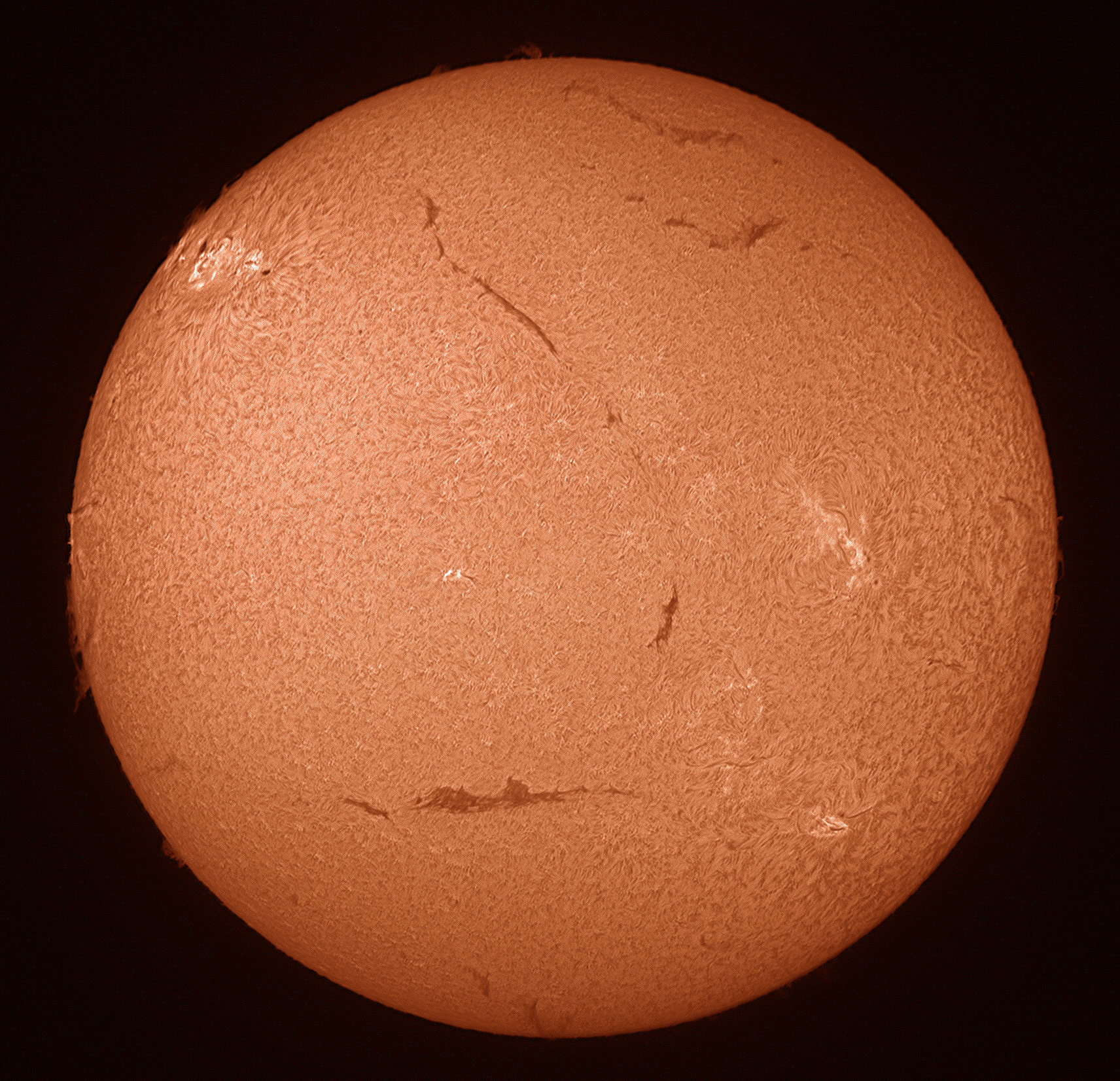13.11.25 10:13 UTC, Coronado SM40 double-stacked filters, f=600mm, IR/UV cut filter, Saturn-M SQR camera.