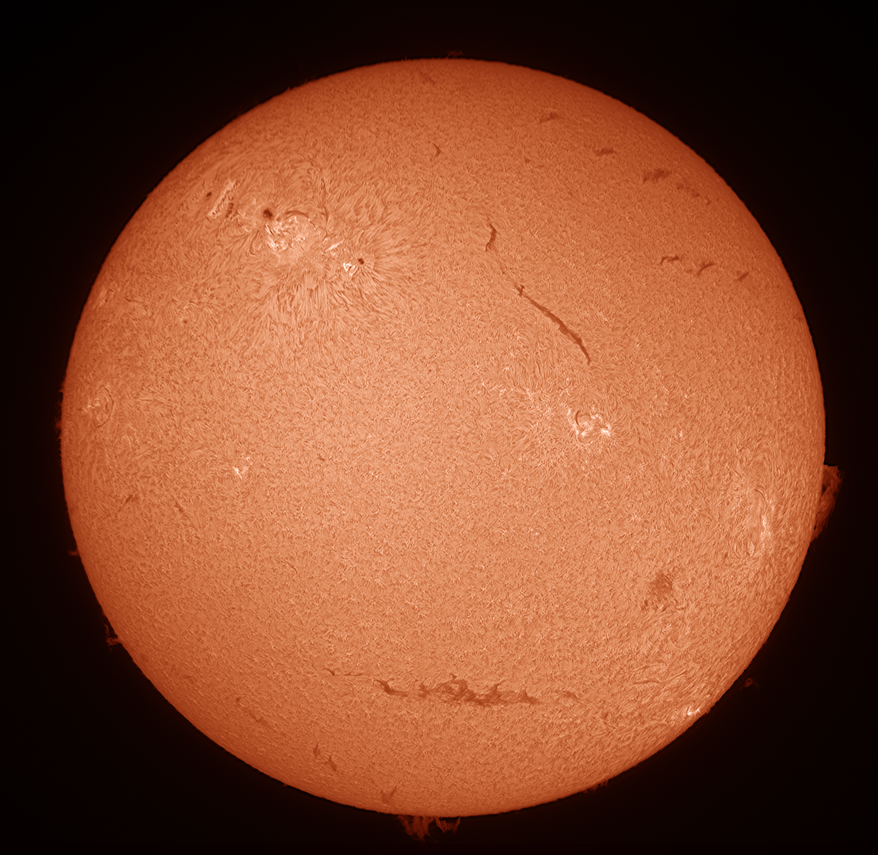 25.11.25 10:09 UTC, Coronado SM40 double-stacked filters, f=600mm, IR/UV cut filter, Saturn-M SQR camera.