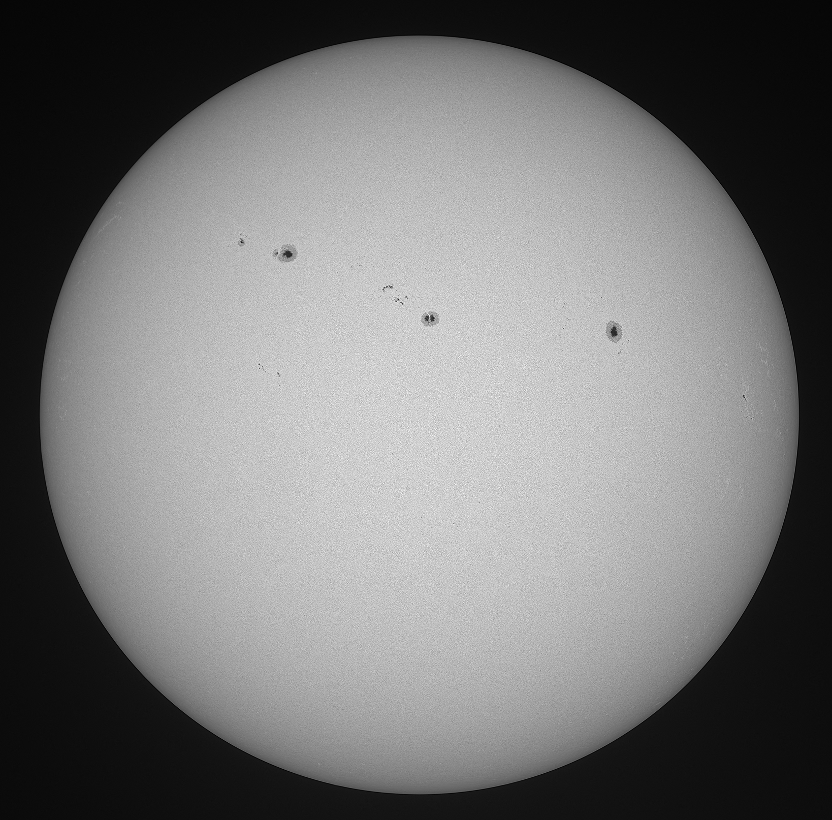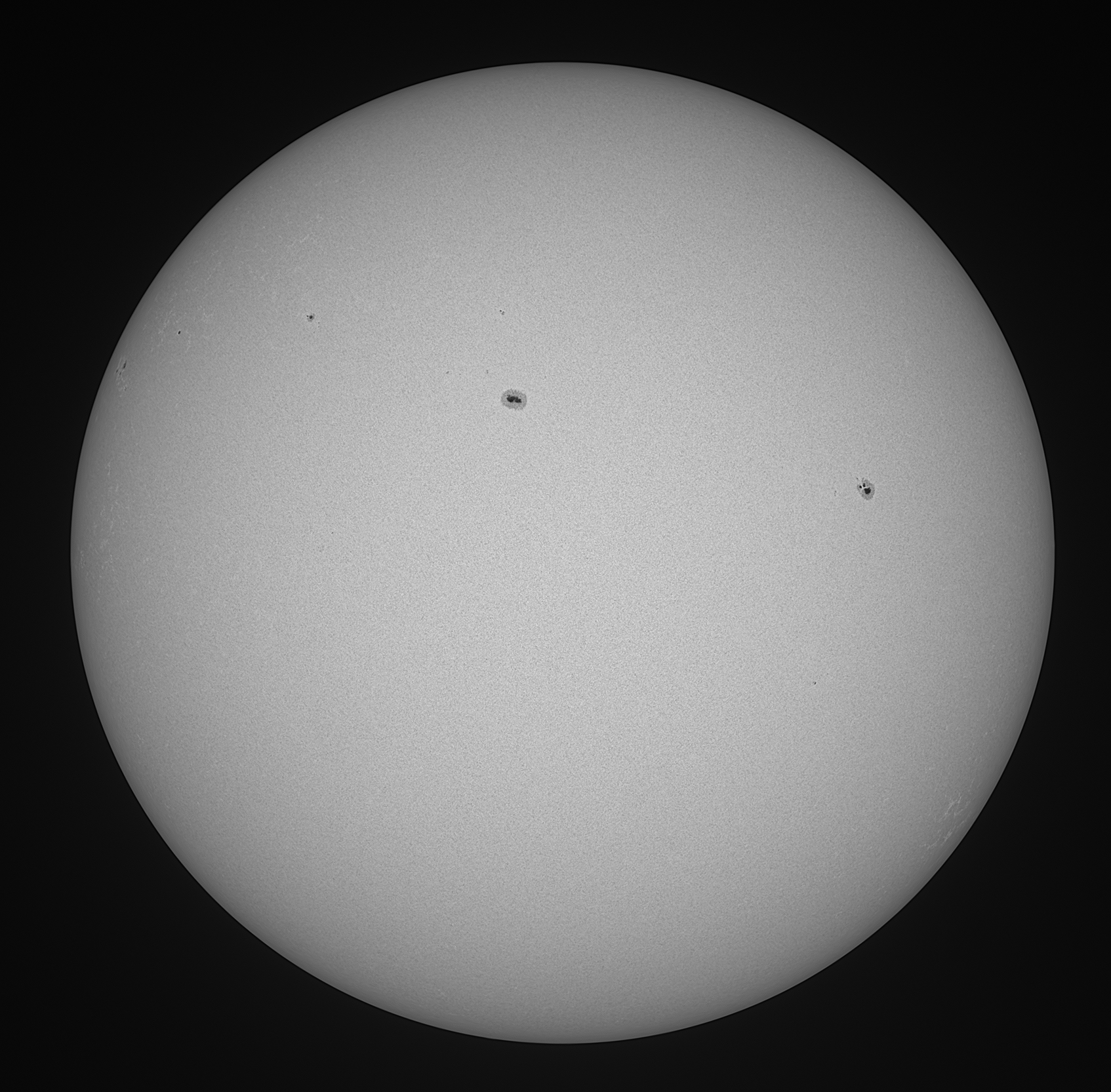 05.03.26 11:16 UTC, white light filter, 80mm ED refractor, f=600mm, Baader solar continuum filter, IR/UV cut filter, Saturn-M SQR camera
